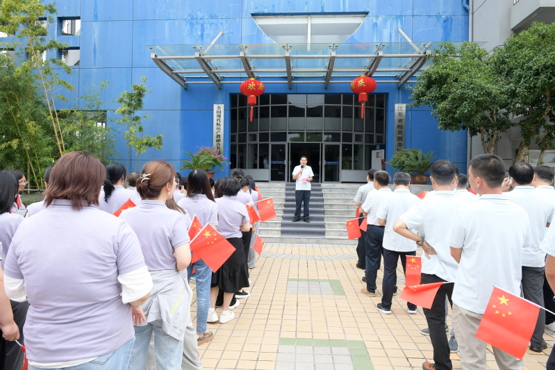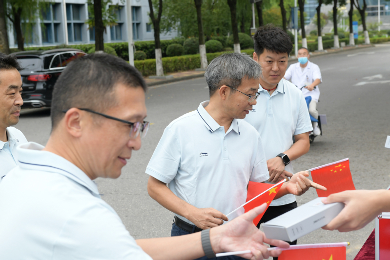 教职工们个个精神饱满,手持五星红旗,在秋意盎然的校园中形成一道流动的美丽风景线。大家边走边聊,在轻松愉快的氛围中交流工作与生活,展现出机关教职工团结协作、积极向上的精神风貌。