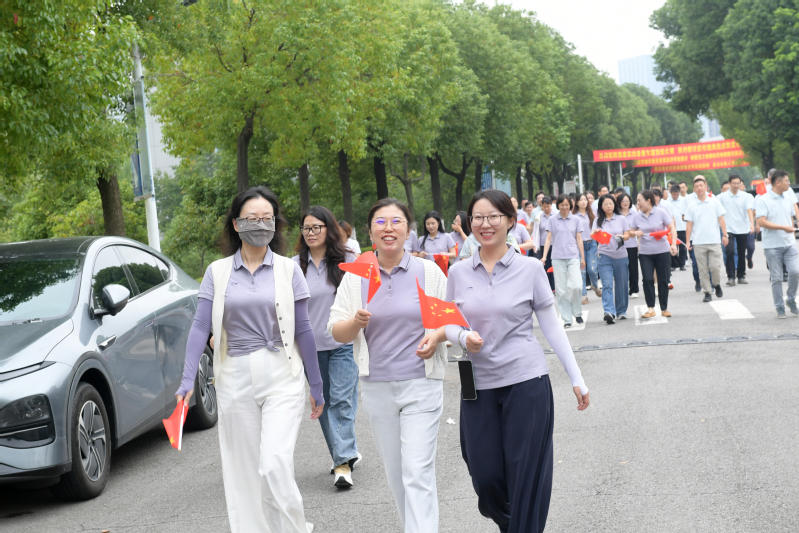 为迎接中华人民共和国成立76周年,积极响应全民健身号召,9月29日中午,机关分工会在校园内举行“迎华诞健身走”活动。本次活动以“健步迎华诞,同心庆盛世”为主题,旨在通过集体健步走的形式,弘扬爱国精神,倡导健康生活,增强机关凝聚力。校党委副书记缪克银、纪委书记孙兵、校工会主席顾育出席活动,机关分工会100余名教职工参加。活动仪式由机关分工会主席刘昊主持。
