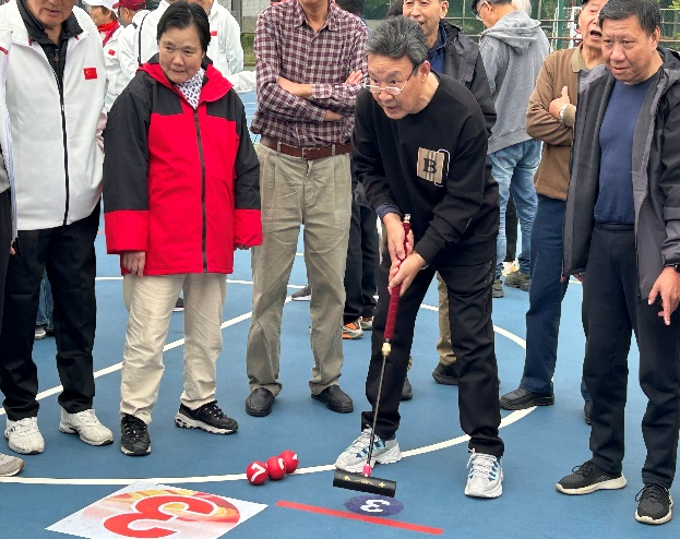 本次运动会共设定点排球发准、地滚球、同心击鼓、定点投篮、飞镖、沙袋、钓鱼、羽毛球等八个趣味性与竞技性兼具的项目。按照承办方对参赛人数的要求,每个单项控制在5人以内,可以少报。根据我校实情,我们选择了定点排球发准、地滚球、定点投篮、飞镖、沙袋、钓鱼等六个项目。参赛的老同志们均能按时到达会场,参加开幕式,并能根据比赛分工,提前到达各比赛分场。比赛时精神矍铄、步伐稳健,技术动作娴熟规范,展现出长期锻炼的扎实功底和良好的竞技水平。他们或专注投入,紧盯目标沉着发力,或默契配合,在互动项目中笑语连连。瞄准、抛球、投掷,每一个动作都透着从容与笃定。赛场边,加油声、喝彩声此起彼伏,老同志们互相鼓劲、彼此喝彩,既赛出了水平,更收获了快乐。整场比赛秩序井然,充分展现了退休教职工积极向上、老有所乐的精神风貌,也让健身运动的魅力在欢声笑语中传递。