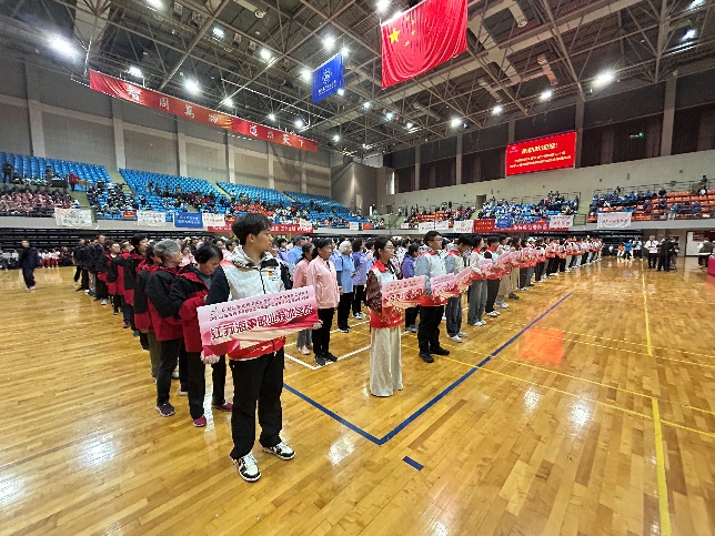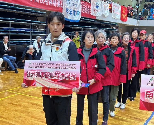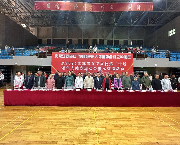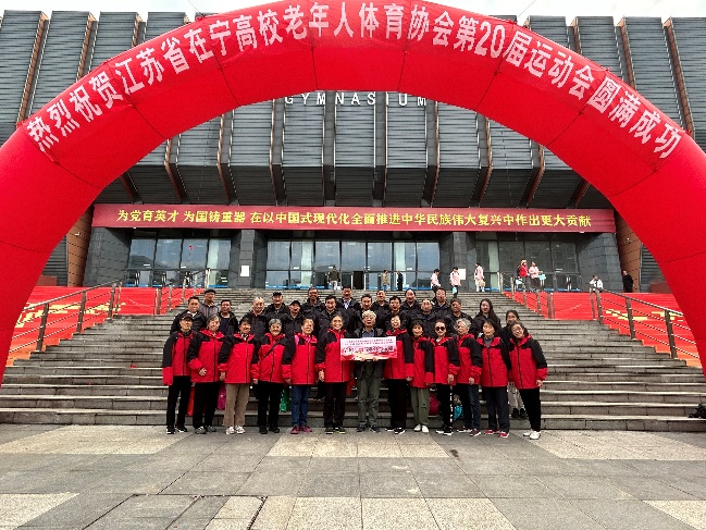 2025年江苏省在宁高校第二十届老年人健身运动会于10月26日在南京航空航天大学将军路校区体育馆隆重举行,来自28所在宁高校的1800多名老年运动员、裁判员、志愿者及工作人员齐聚一堂,共同见证这一老年体育盛会的精彩华章。我校37名运动员及工作人员参加,工会副主席、离退休处副处长杨劲艺出席。