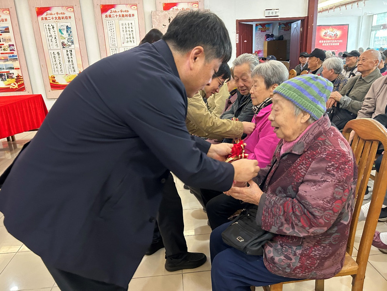 祝寿仪式成为活动的高潮环节。伴随着欢快的生日祝福歌,缪克银、顾育、杨劲艺、喻诗祥四位老师为8名整生日的老同志逐一佩戴鲜艳的大红花。胸前的红花与老同志们幸福的笑容相映成趣,场面温馨感人。随后,领导与寿星们亲切合影,将这一美好瞬间永久定格。