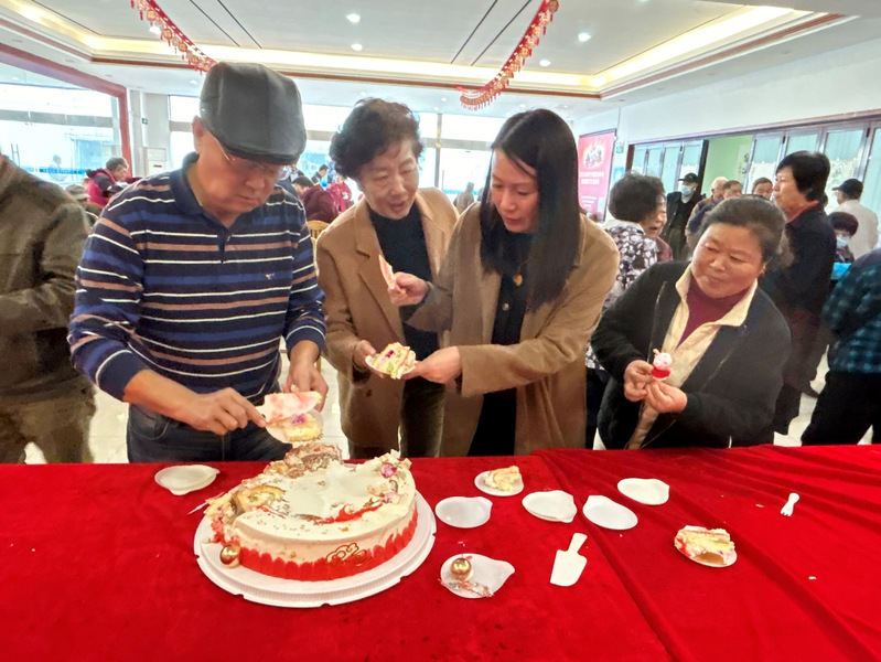 祝寿仪式成为活动的高潮环节。伴随着欢快的生日祝福歌,缪克银、顾育、杨劲艺、喻诗祥四位老师为8名整生日的老同志逐一佩戴鲜艳的大红花。胸前的红花与老同志们幸福的笑容相映成趣,场面温馨感人。随后,领导与寿星们亲切合影,将这一美好瞬间永久定格。