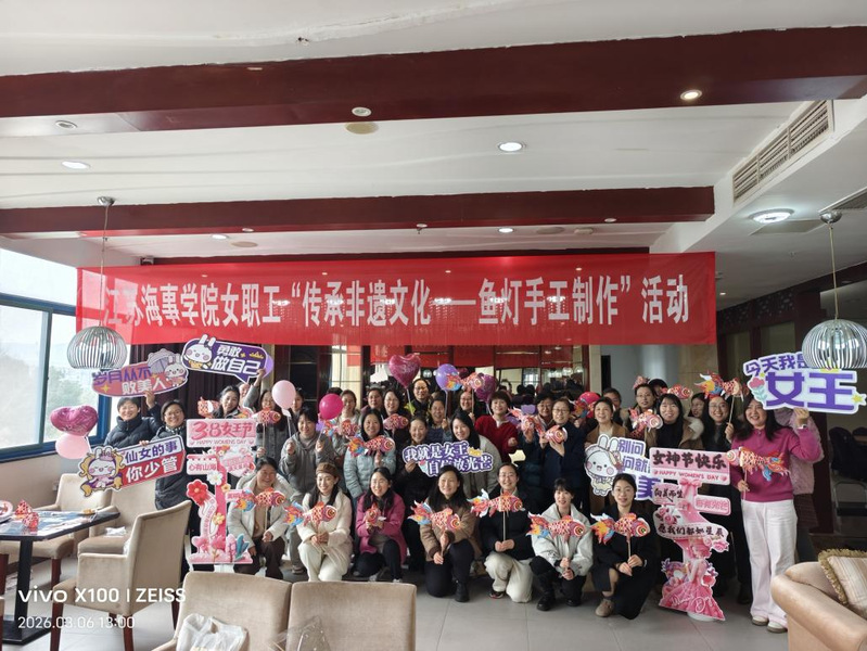 春风送暖,芳华绽放。在第116个“三八”国际妇女节来临之际,为丰富我校女教职工精神文化生活,传承中华优秀非物质文化遗产,3月6日江苏海事学院特别举办“传承非遗文化·鱼灯手工制作”妇女节主题活动。来自各分工会的女职工,以巧手制鱼灯,以匠心赴春光,在温馨美好的氛围中庆祝属于自己的节日。