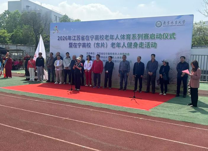 由南京林业大学主办的江苏省在宁高校东片健步走活动于2026年4月18日下午2点在南京林业大学操场顺利举行。我校有80名离退休教职工前往参加活动,离退休处全程陪同,做好服务工作。